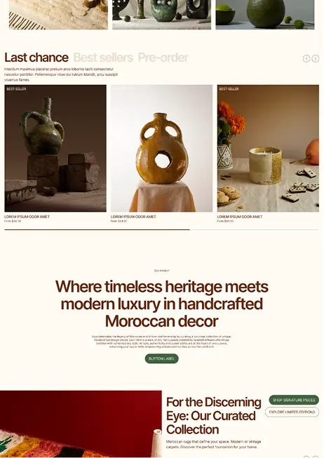 Nous avons créé un univers visuel texturé et épuré, où typographie, lumière et couleurs subliment le caractère des pièces et la singularité des artisans.